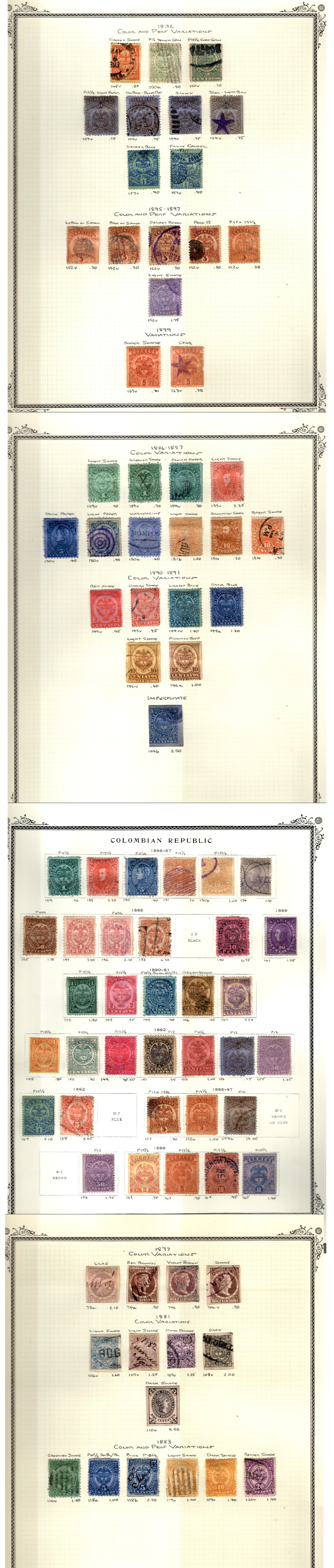 9907830 Colombia Scarce Pages 1877/.. with Color Variations!