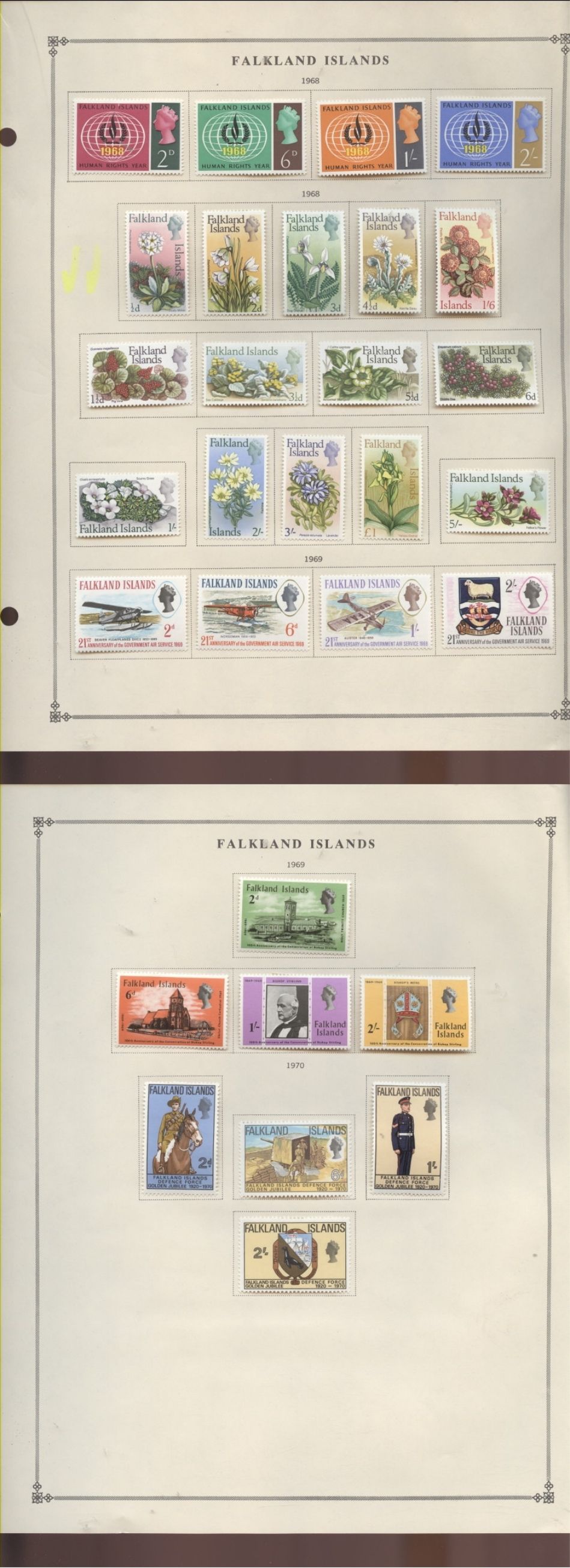 Falkland 1968/1970 fresh mint pages