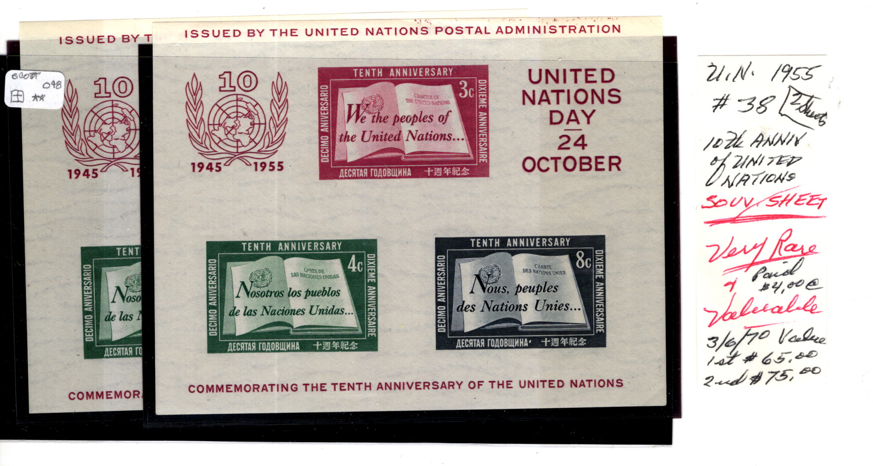 UN 2x Scarce #38 Sheets HiCV
