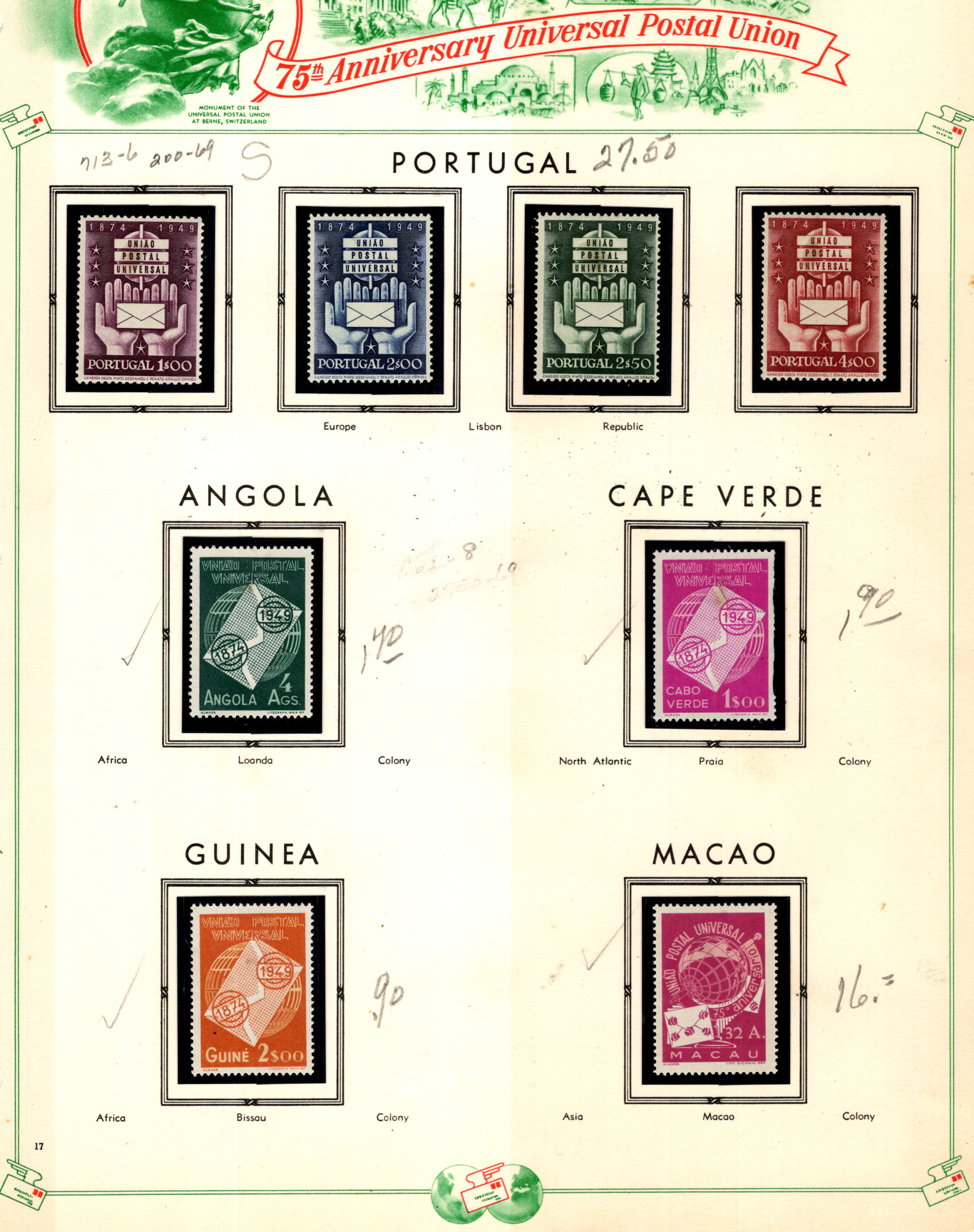 Portugal Colonies NH UPU Macau